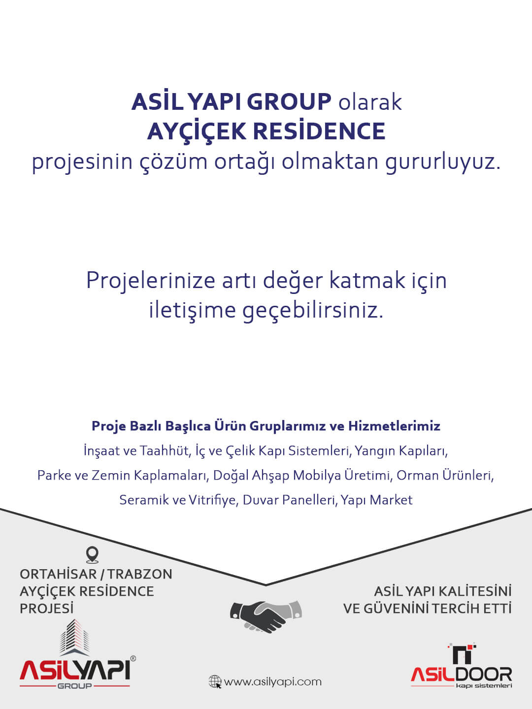 Asil Yapı Group olarak Ayçiçek Residence projesinin çözüm ortağı olmaktan gururluyuz.